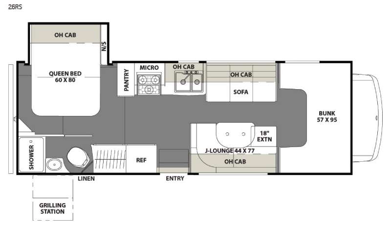 Over the cab area enjoy a 57" x 95 bunk when it is time to turn in for the night.