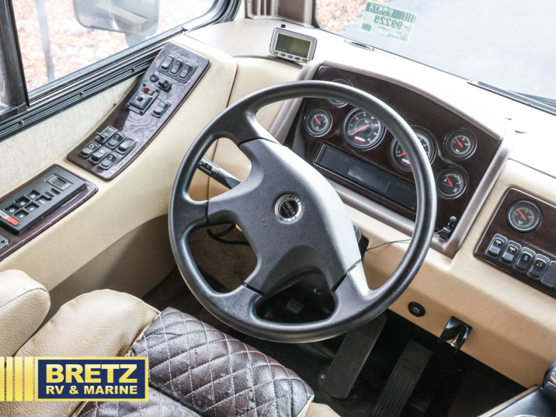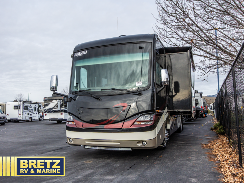 Take comfort along with you when you hit the road in this Sportscoach Cross Country class A rear diesel featuring double slides.