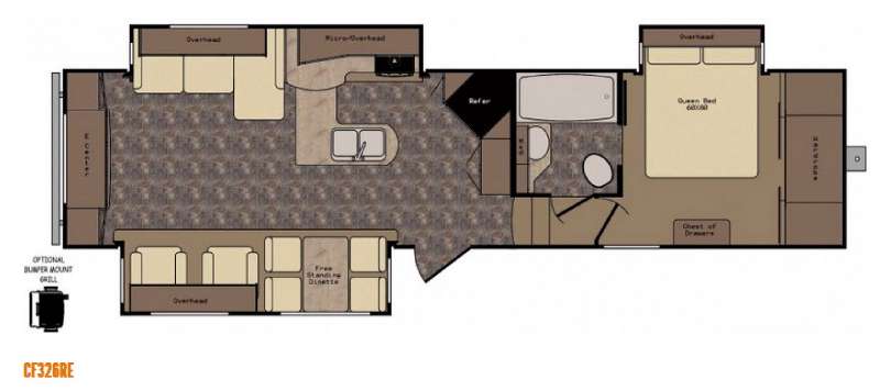 The Cruiser CF326RE fifth wheel by CrossRoads RV offers triple slides and a rear entertainment.