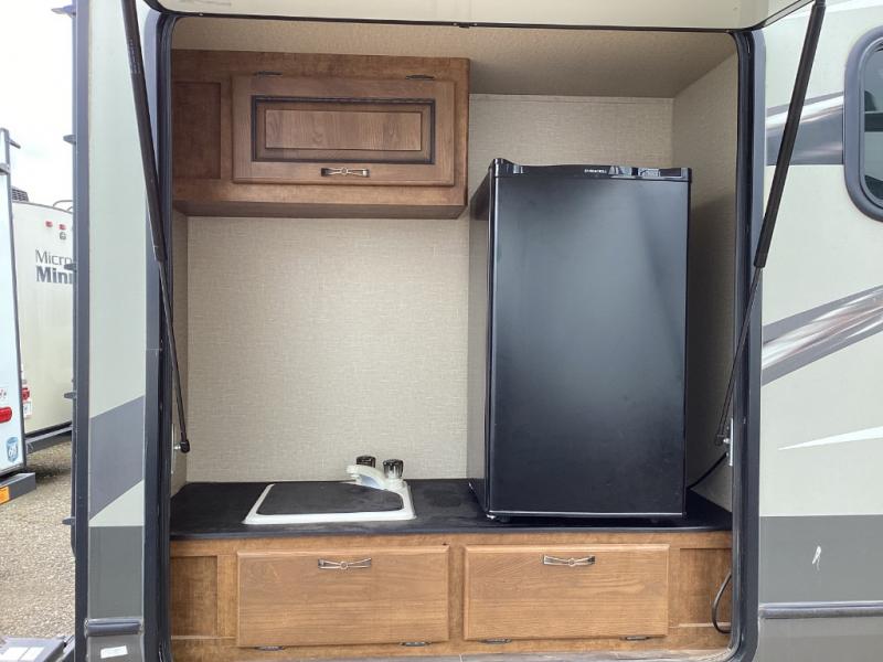 Outside you are sure to enjoy the exterior kitchen with the refrigerator and sink. You can even choose an optional bumper mount grill.