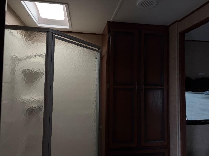 You will find plenty of overhead cabinets throughout the travel trailer as well as a large exterior pass thru storage. You can even choose an optional grill.