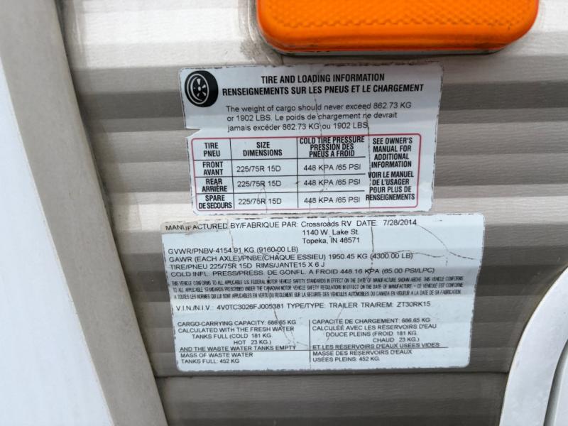 Used 2015 CrossRoads RV Zinger ZT30RK Travel Trailer