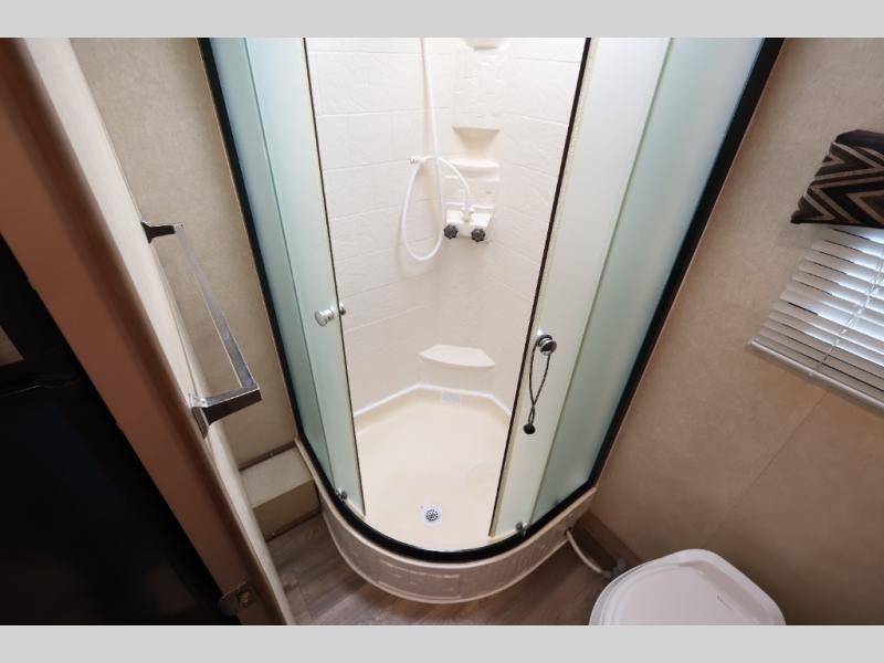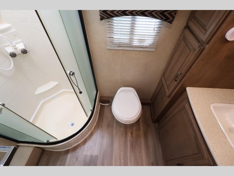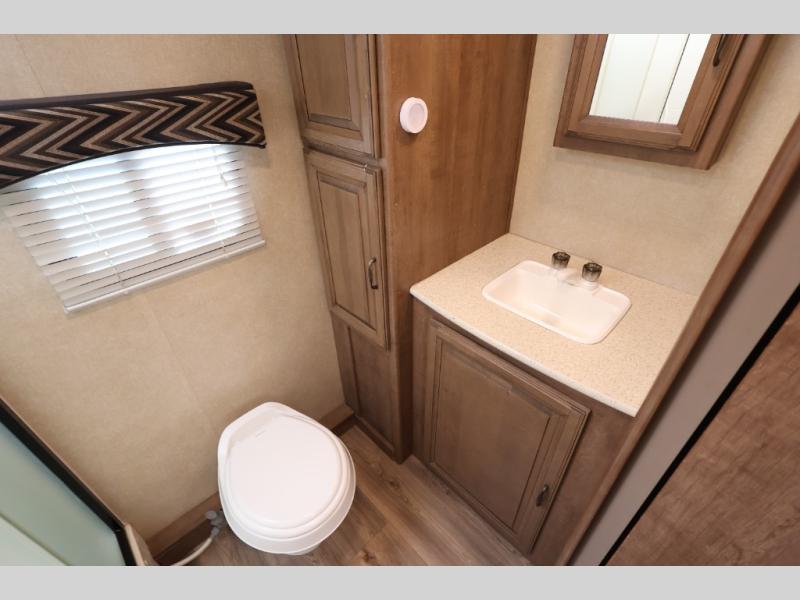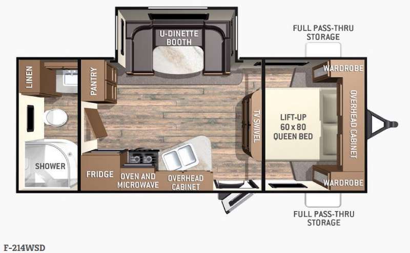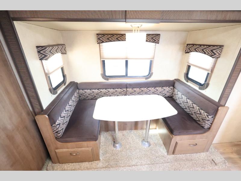 The Cruiser Fun Finder F-214WSD features a u-shaped dinette and a rear bathroom that is the full width of this travel trailer.