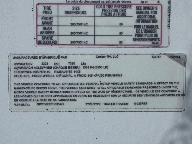 Used 2015 Cruiser Shadow Cruiser S-225RBS Travel Trailer