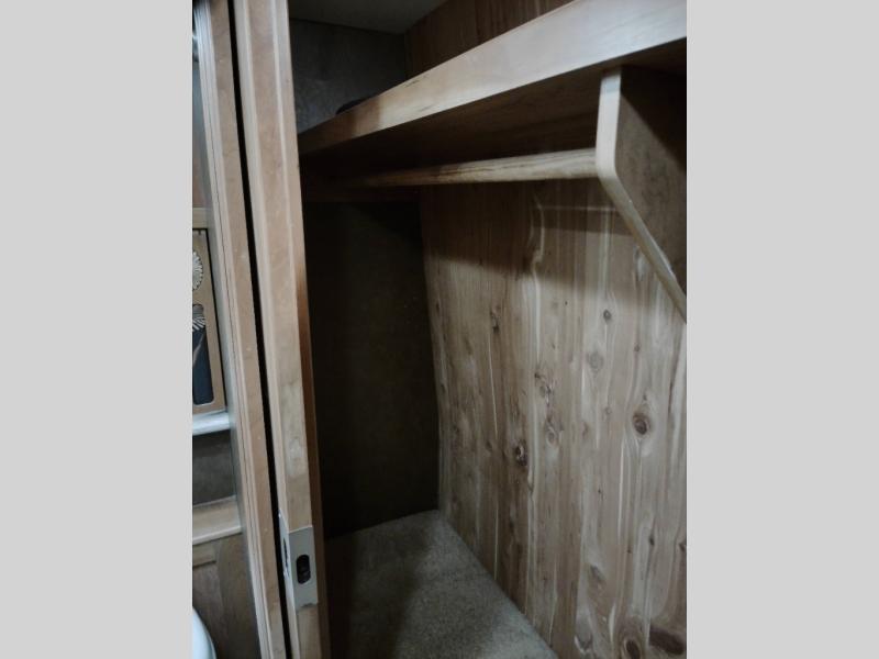 The bedroom offers a king bed slide with nightstands. Across from the bed there is a slide with a vanity, dresser & 32" LED TV.
