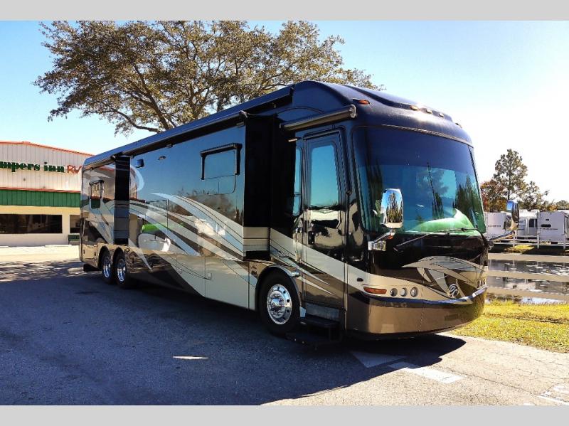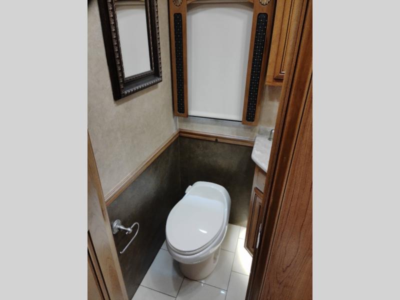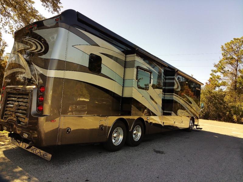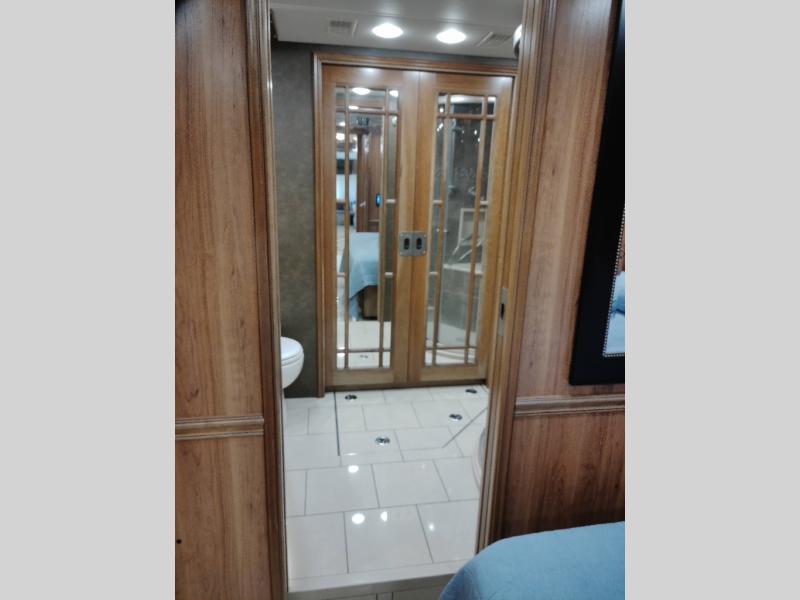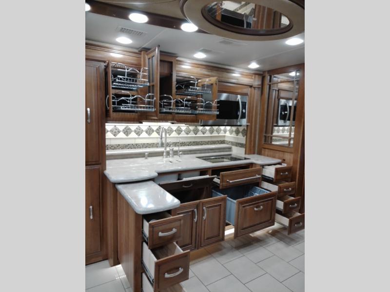 The Anthem 42RBQ diesel motor home by Entegra Coach offers quad slides and a rear bathroom.