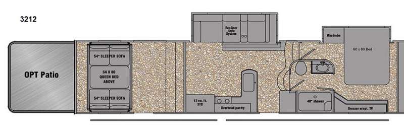 In the rear, there is plenty of room to load or unload your off-road toy. You will also enjoy the sleeper sofa with queen bed above. This gives more sleeping space for family and friends. If you like you can also add an optional patio off of the cargo area.