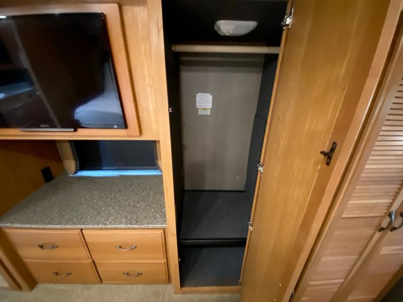 There are many options that you can choose from such as a stackable washer and dryer, electric fireplace, residential refrigerator, 3-burner cooktop with oven, entertainment center, and a front 32" LED TV.