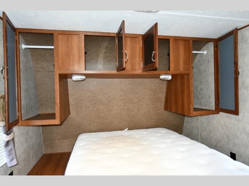 Overhead cabinet above the bed for extra storage