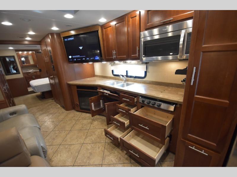 Perfect for Full-Time RVing or Extended Travel – With its gourmet kitchen, roomy living spaces, and ample storage, this motorhome is ideal for full-time RVers or those seeking a comfortable home on the road.