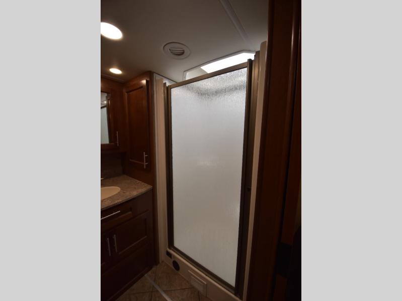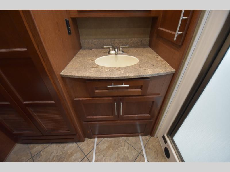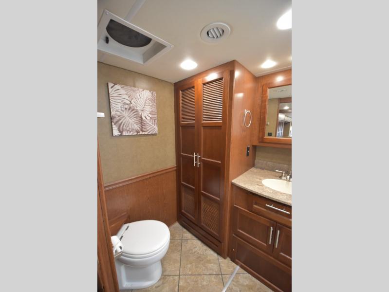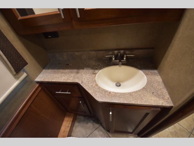 Full Bath with Dual Vanities, large shower, and premium fixtures, providing a true spa-like experience on the road.