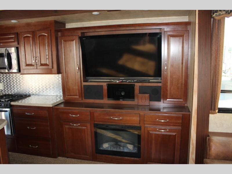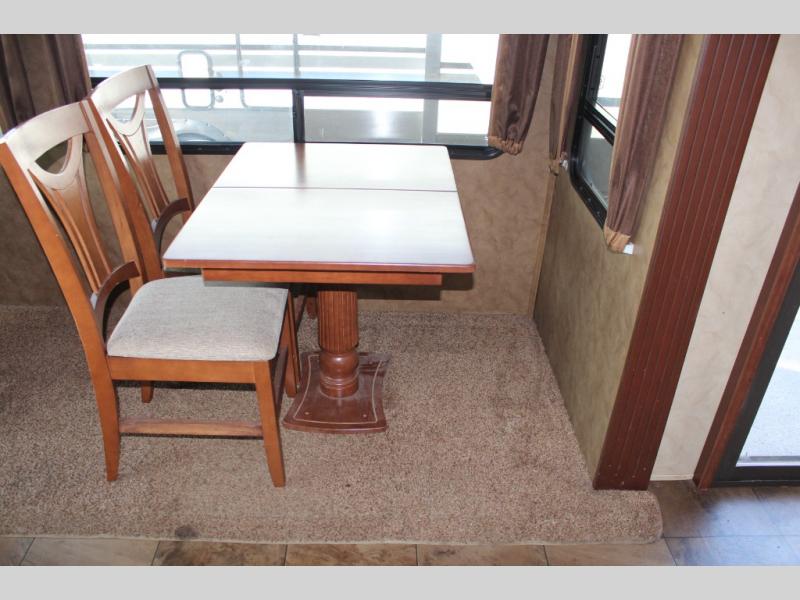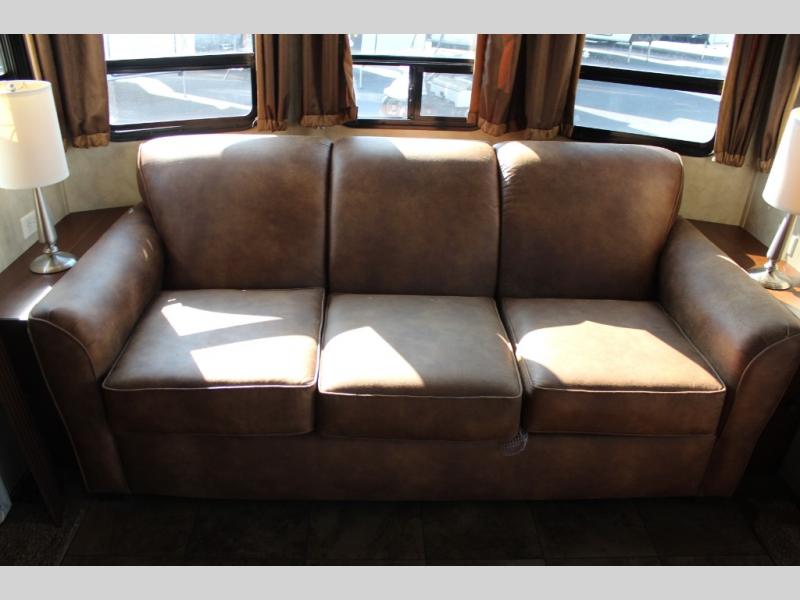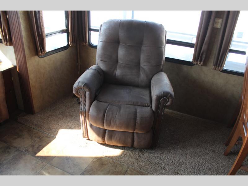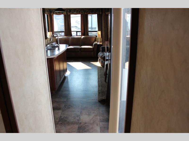 As you enter the 40CCK Cedar Creek Cottage destination trailer by Forest River you will be wowed by the space that the triple slide outs provide this destination trailer.