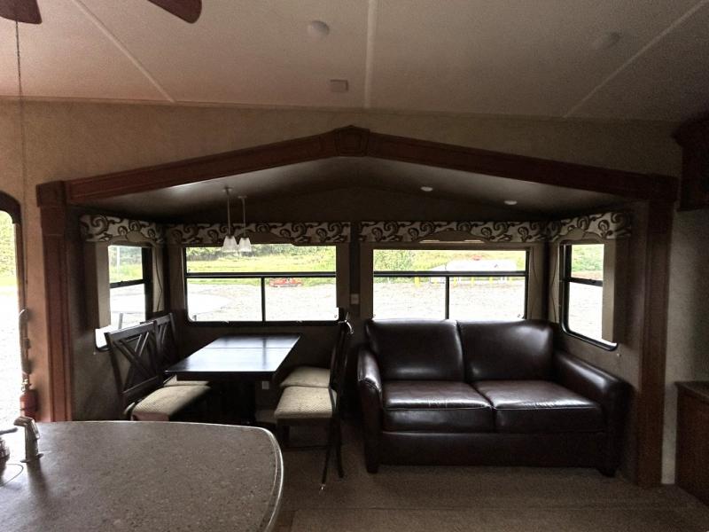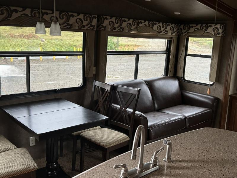 With three well-placed slide-outs, this fifth wheel opens up to create a spacious, residential-style layout—perfect for entertaining, relaxing, or cooking up a meal after a day on the road. -