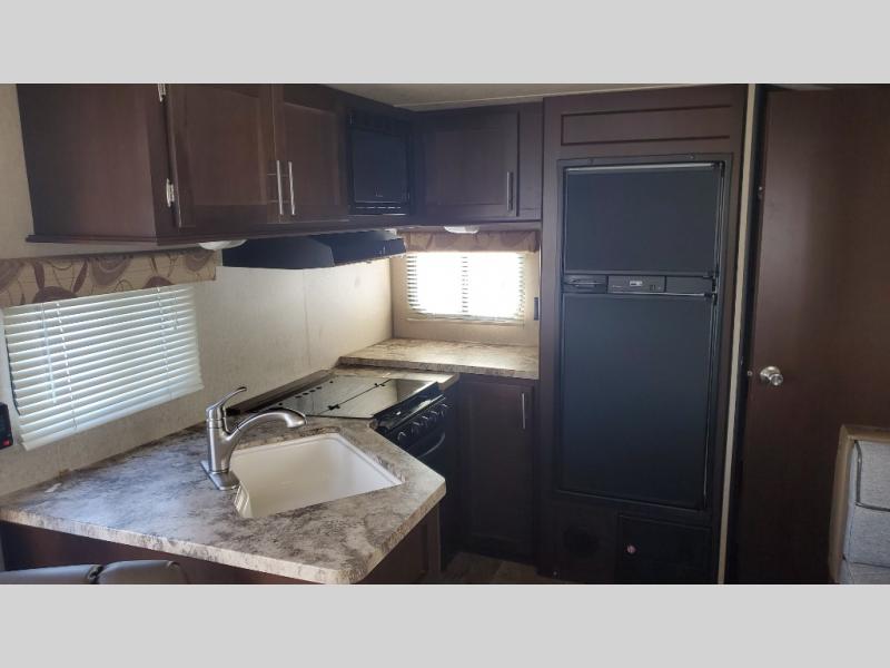 If you are looking for a travel trailer which makes it easy to entertain guests, then the 24RK Cherokee Grey Wolf by Forest River is just that model with a rear kitchen and a single slide.