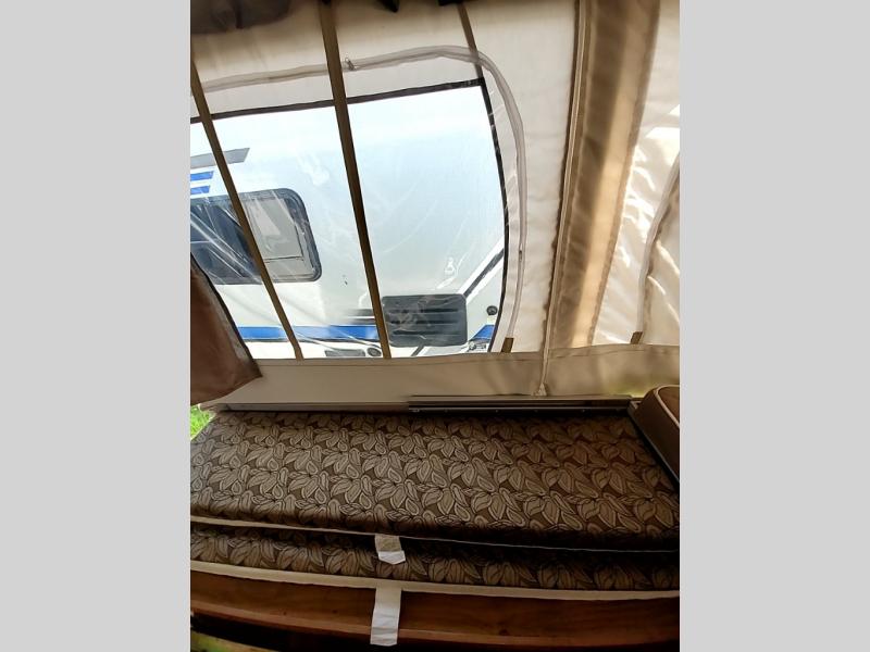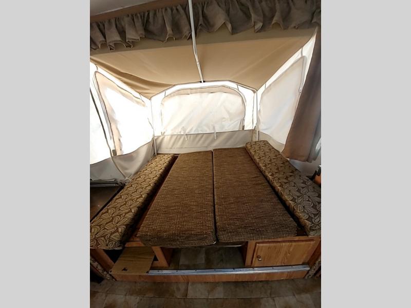 The Flagstaff MAC/LTD 228D folding pop-up camper by Forest River offers a single slide. In the rear you will find a 60" x 80" tent bed and a 70" x 80" tent bed in the front.