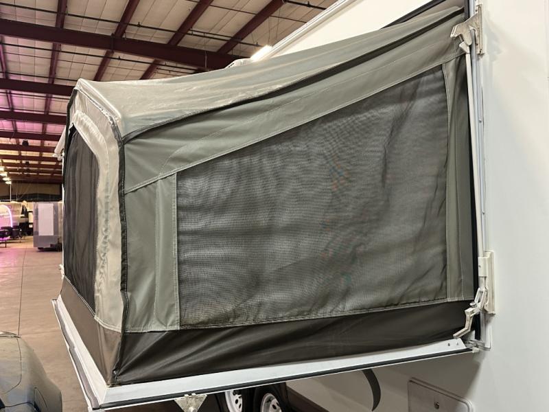 Additional $1000 rebate for financing with Maxie Price RV in house lender .There is lots of extra sleeping space inside the Flagstaff Shamrock 233S. Three queen tent beds, located at the front, rear and rear side along with a single slide help open up the living space in this expandable travel trailer. Storage shelves are located above all three tent openings, with pantry space below the side bed.