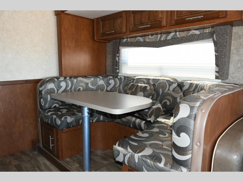 Hide-a-bed sofa and U-shaped dinette slide provide comfortable seating and extra sleeping options. -
