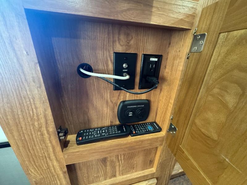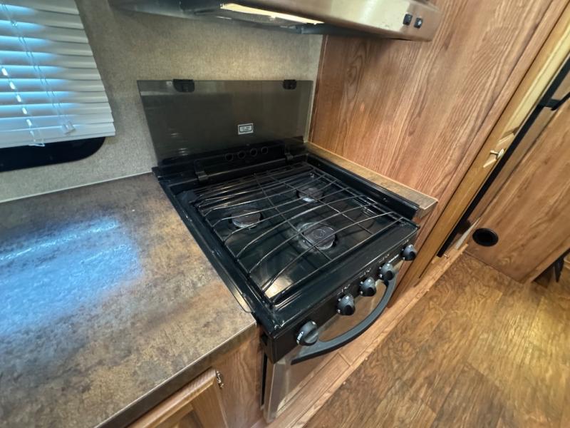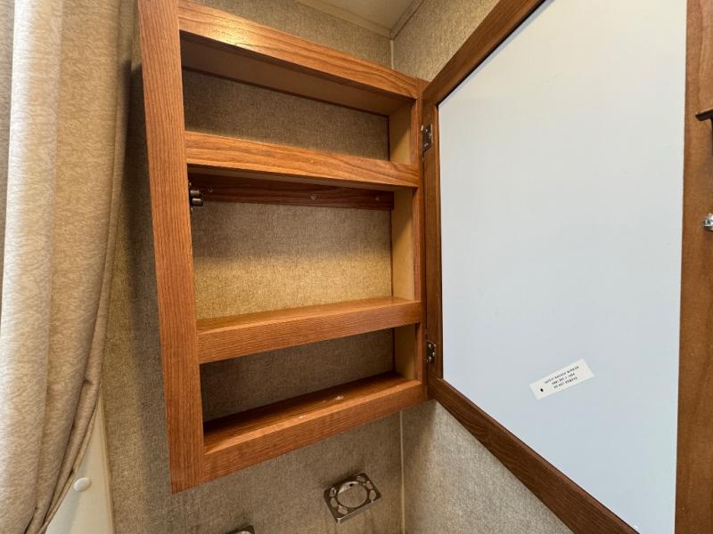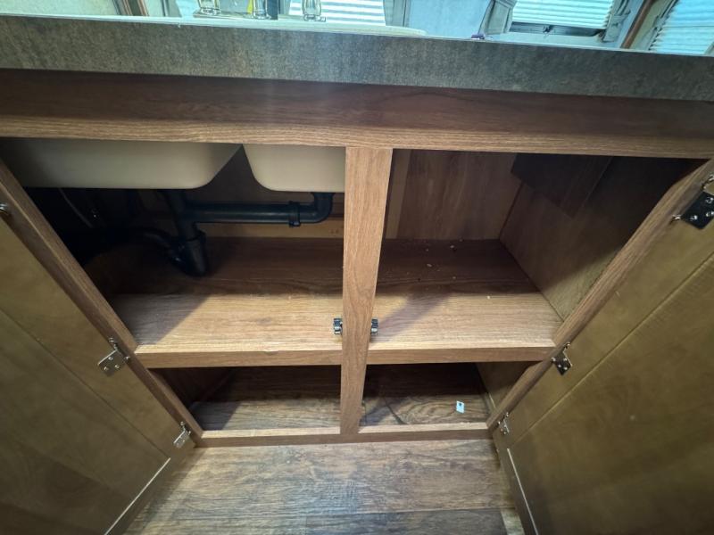 There are overhead cabinets inside the expandable as well as exterior storage. You can even choose an optional gas grill.