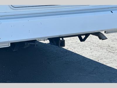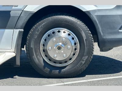 The bathroom is on the right as you proceed toward the rear of the motor home. Inside the bathroom there is a toilet and corner shower. Just around the corner of the bathroom you will find a sink. Across from the sink the large wardrobe provides added storage.