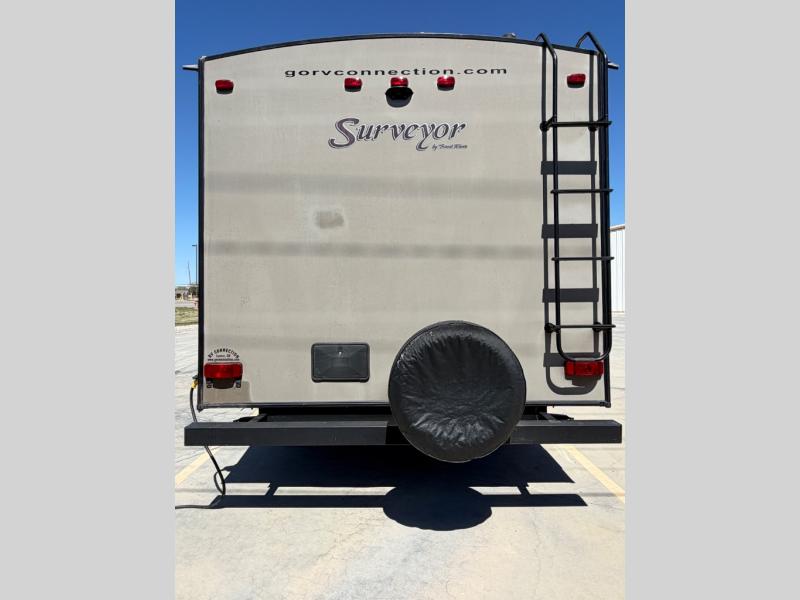PRE-INSPECTED AND CAMP READYThe Surveyor 201RBS travel trailer by Forest River offers a single slide and a rear bath.