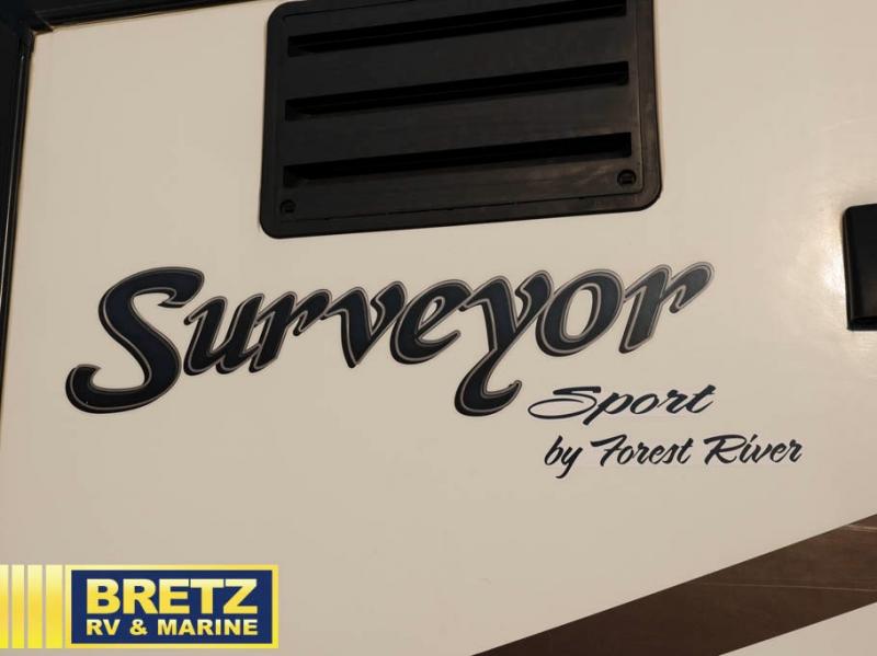 The Surveyor Sport SP-240RBS travel trailer by Forest River offers a rear bath and a single slide.