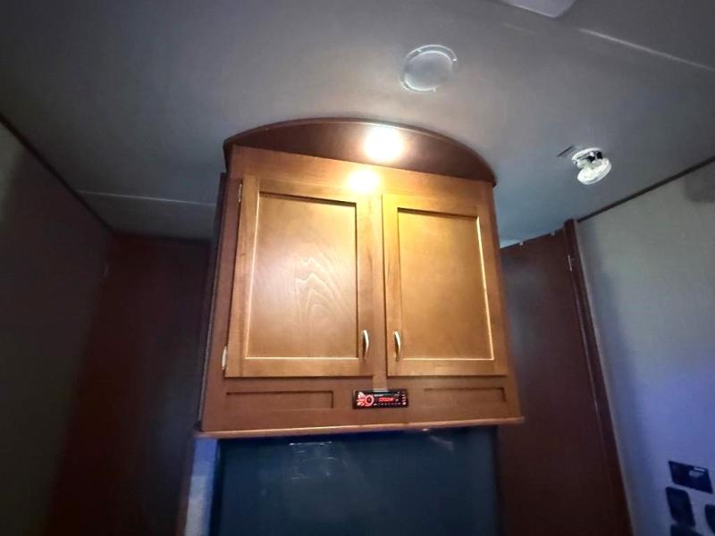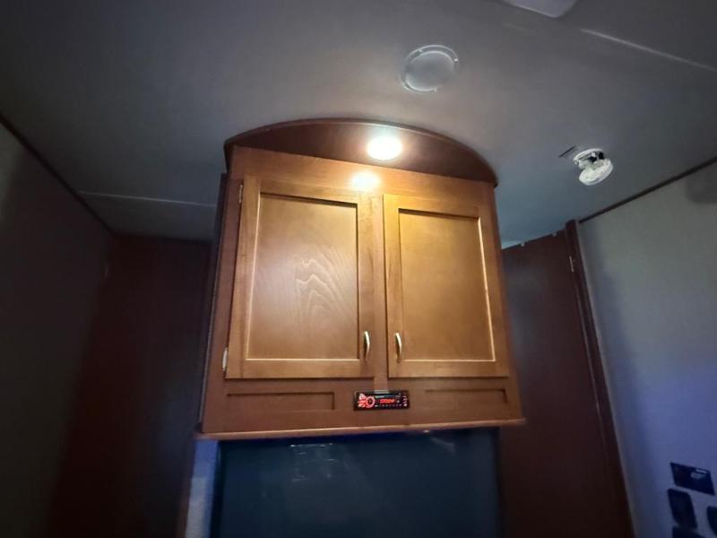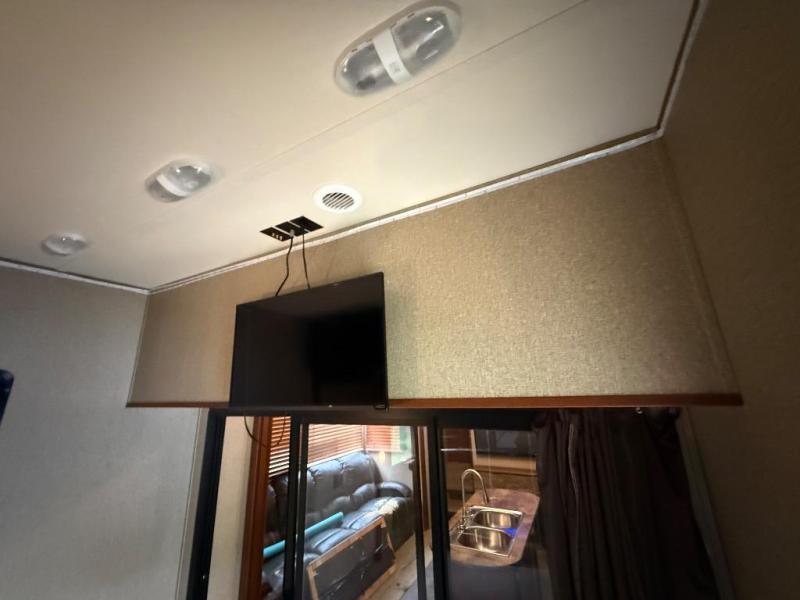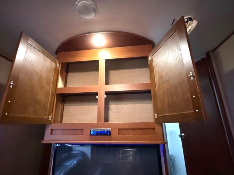 You won't be lacking for storage space with all of the overhead cabinets as well as the exterior pass thru storage. There is even a TV mount outside.