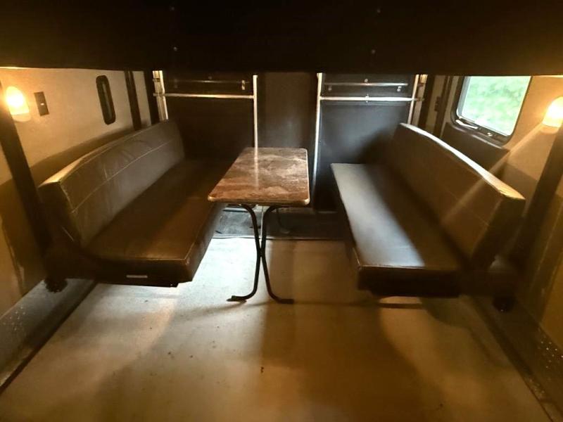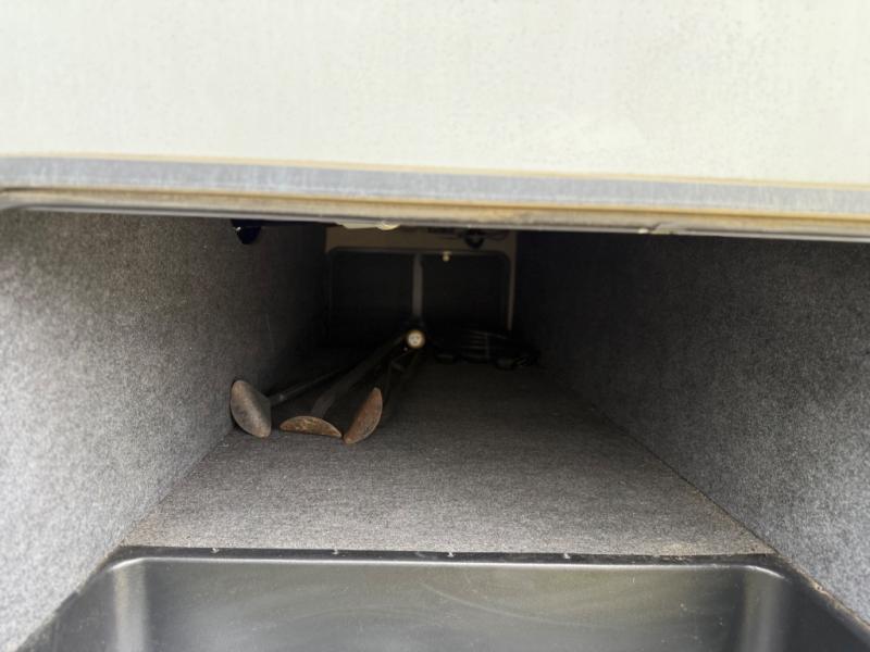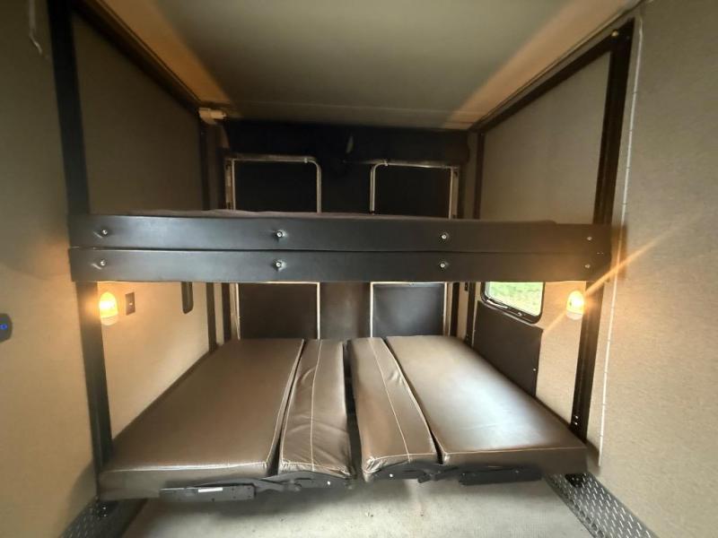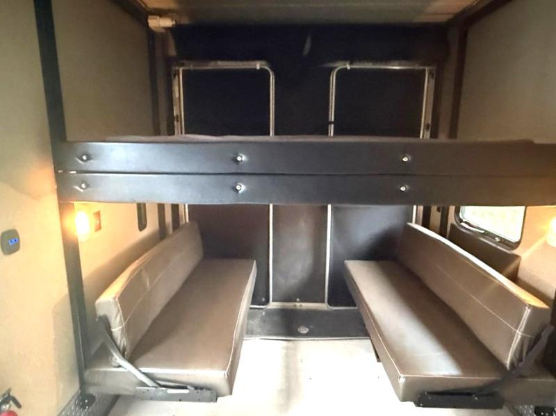 Garage Area: Offers around 13–14 feet of garage space with ramp door access—ideal for carrying ATVs, motorcycles, bikes, or other gear. Includes tie-downs and often folding bench seating that converts into sleeping space.