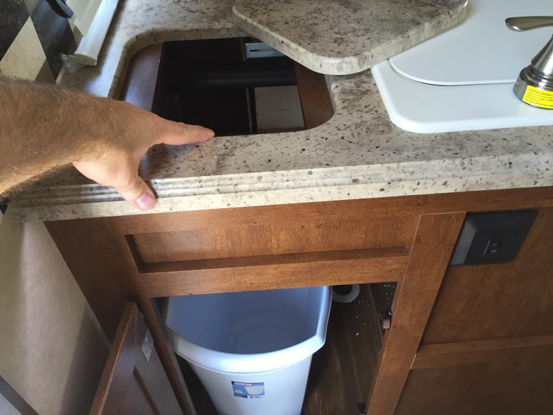 What I liked most: Large entry area when you walk in makes it easy to get by people coming and going. Storage under sofa. U-shaped dinette with fairly large table. Bathroom has unique rear door entry/exit access not found on many RVs. Large refrigerator and freezer. Garbage area was right next to entry/exit door and was accessible through the counter top.