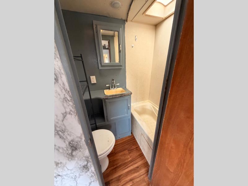 The bathroom has a toilet, sink, medicine cabinet, and tub.