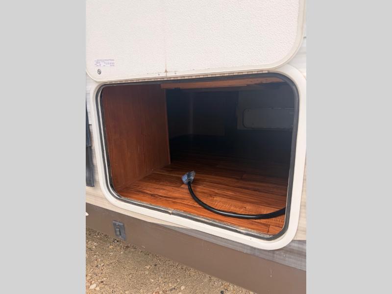 There is plenty of storage with the exterior pass-thru storage and all of the interior overhead cabinets.
