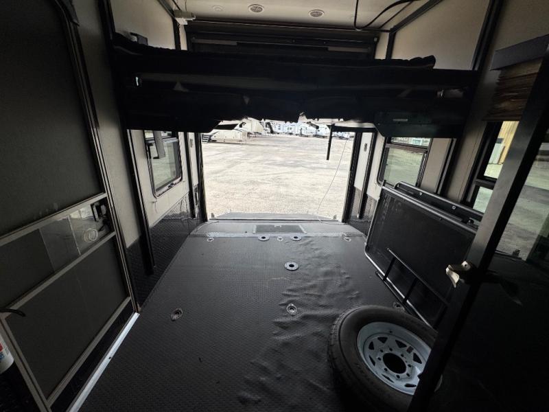 Step inside using the rear ramp door and see how easy it will be to transport your outdoor toys and gear to and from your favorite locations. There is an LED TV on the interior garage wall. The side man door lets you get in and out of the garage when the ramp door is closed. There is a twin loft bed above the cargo space that the kids will surely love. There is also a radio and a half bath featuring dual entry doors.