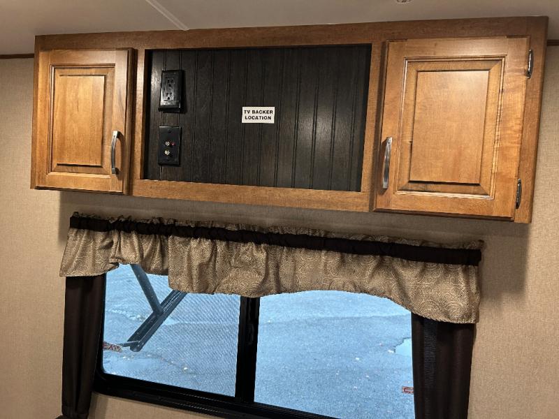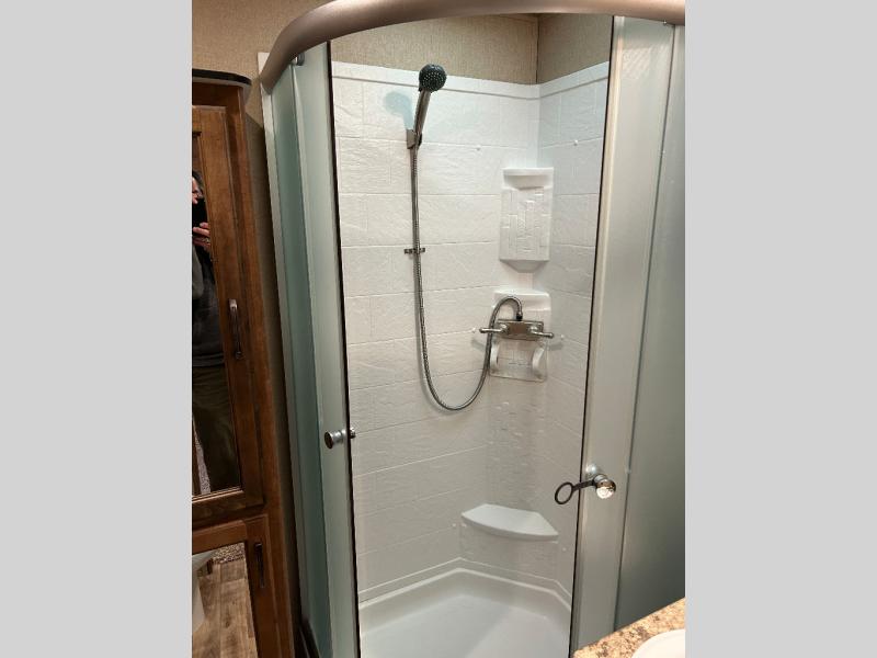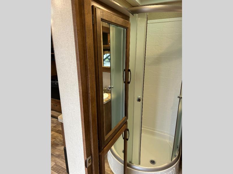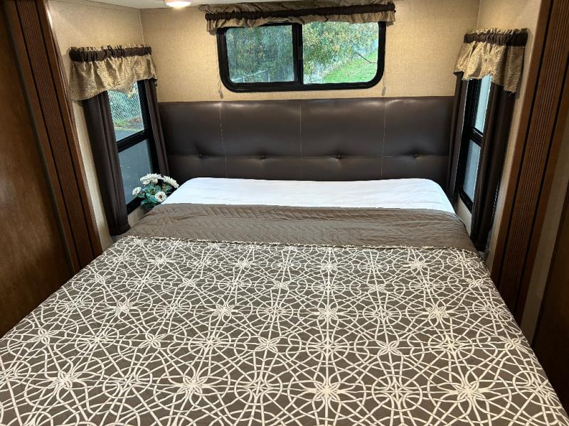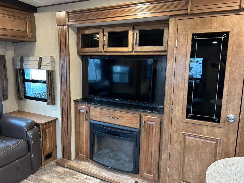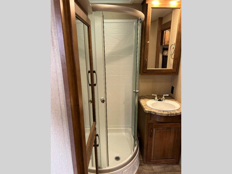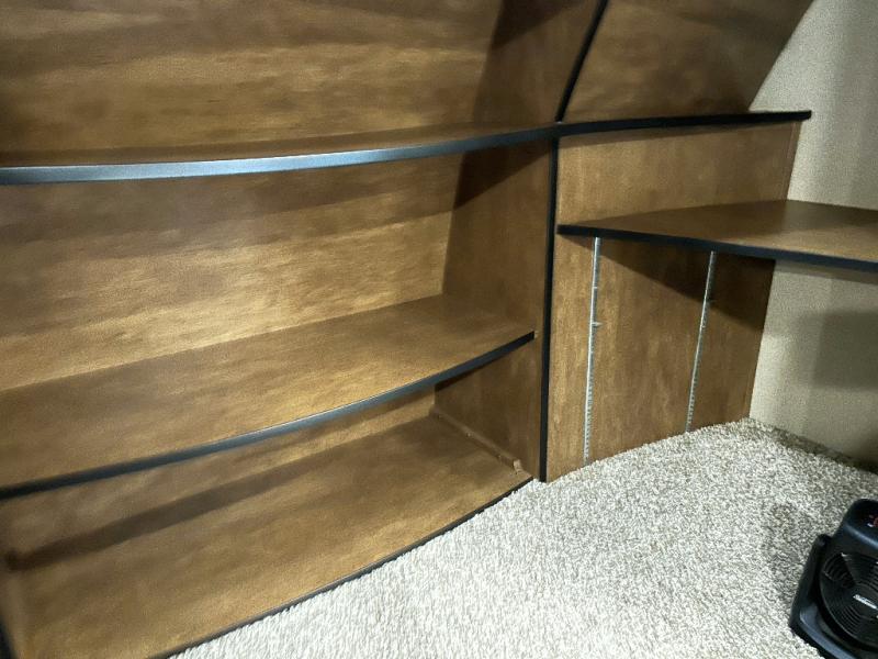 What I liked most: Wide open living area, lots of counter and kitchen storage... and I absolutely love the large sink in the island (makes washing large camping dishes much easier) I love to cook so the kitchen space was a big plus for me. Bathroom has much more storage for linens etc, than most RVs, and 'medicine' cabinet is super large, and having 3 mirrors is so convenient. Bedroom dresser and closet makes it so much easier camping - no living out of suitcase or bag. With this RV, i do not find myself constantly rotating stuff to make room to do things or get to things. There is a space for everything. Nothing beats sitting in the comfortable theater seats in front of the fire place, relaxing and watching some tv with the hubby.