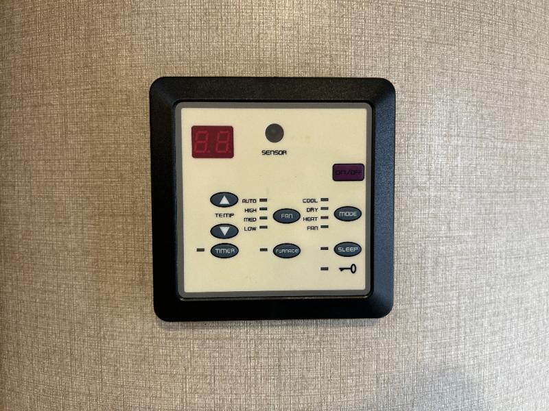 What I liked most: Solid aluminum steps to get in. Stadium seating is directly across from the television and fireplace for socializing and kicking back. The kitchen island looks like it has more counter space than usual. The bathroom has 3 good sized mirrors, some of the other bathrooms had just one small mirror. The bedroom wardrobe closet is unique, the floor of it sits higher and is carpeted, looks like it can be used as a seat.