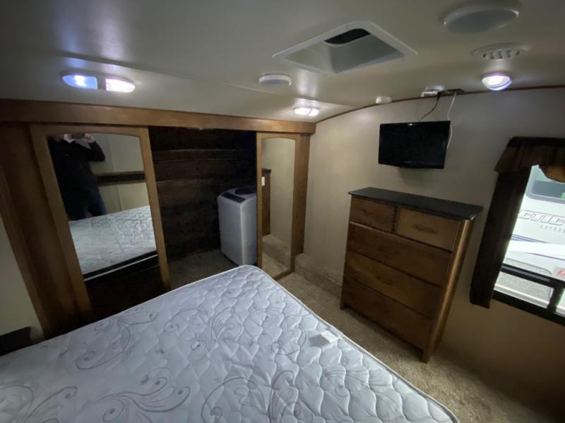 The front bedroom features a queen bed slide, dresser, wardrobe with sliding doors including a shirt closet and washer/dryer prep, plus so much more!