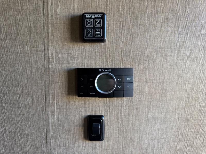 What I liked most: Large awning covers both exterior entry doors. Good sturdy aluminum steps with night light at both. The front living area is very open and the way it flows down into the island kitchen area, just beautiful. LED lighting in master bedroom wardrobe.