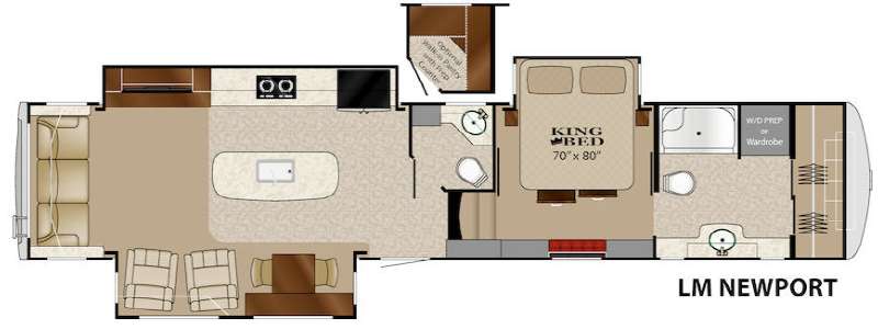 Enjoy spending time away from home in this Landmark 365 fifth wheel Newport model by Heartland RV. This unit offers one and a half baths, a convenient kitchen island, a rear living layout, and a front bath that is not only spacious, but it has been prepped for a washer and dryer if you wish to add for more convenience.