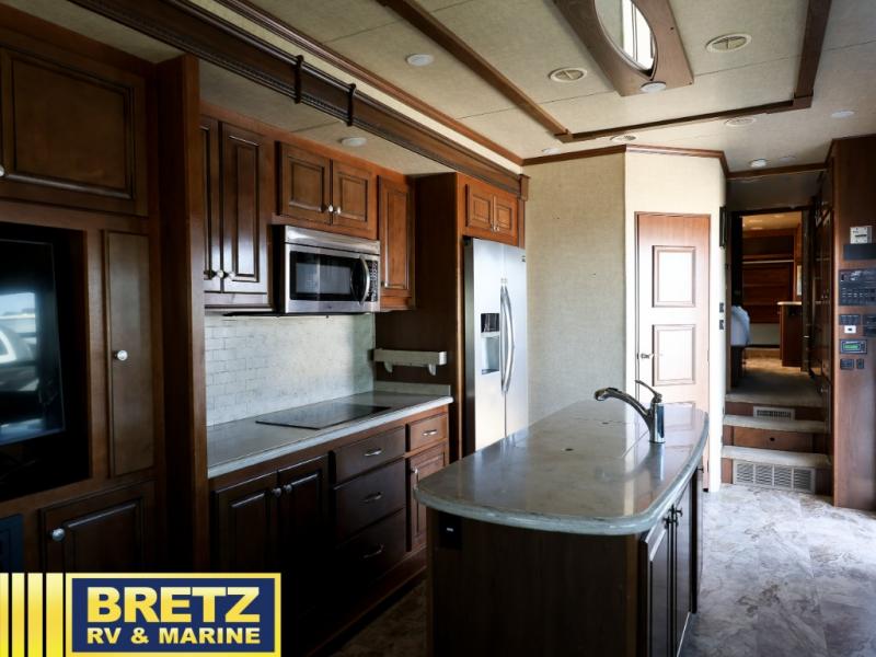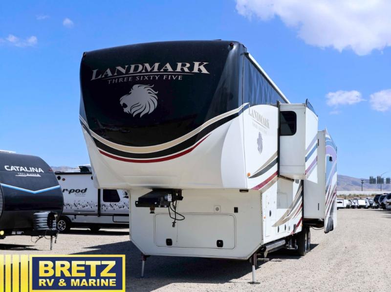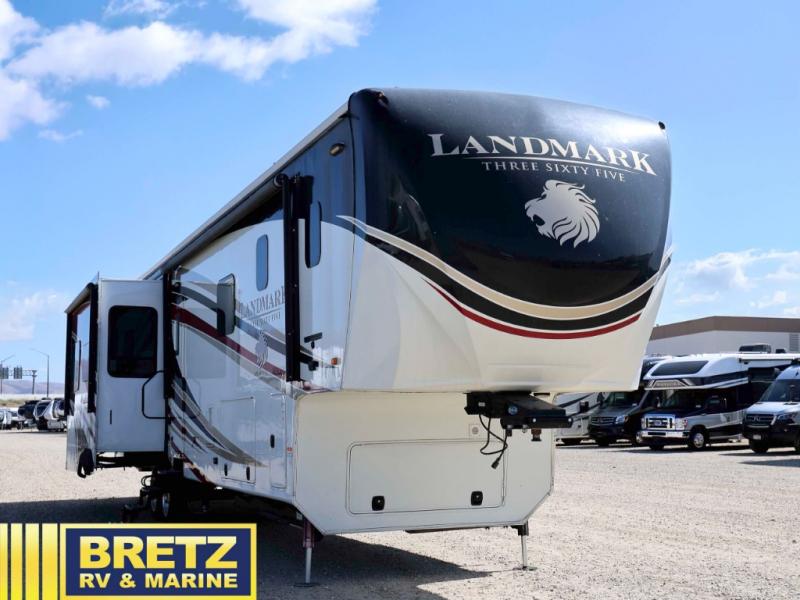 Enjoy spending time away from home in this Landmark 365 fifth wheel Newport model by Heartland RV. This unit offers one and a half baths, a convenient kitchen island, a rear living layout, and a front bath that is not only spacious, but it has been prepped for a washer and dryer if you wish to add for more convenience.