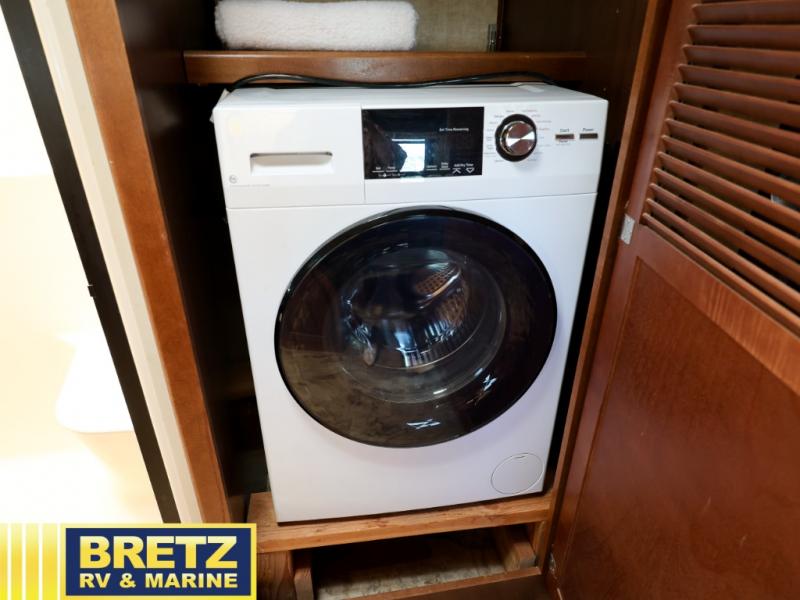 Head up the steps to the right of the entry door and find a bank of storage cabinets for all of your things. A sliding door creates a private retreat in front and the king bed slides out creating more walking around space to enjoy. There are drawers beneath the foot of the bed to help keep things stowed away and organized.