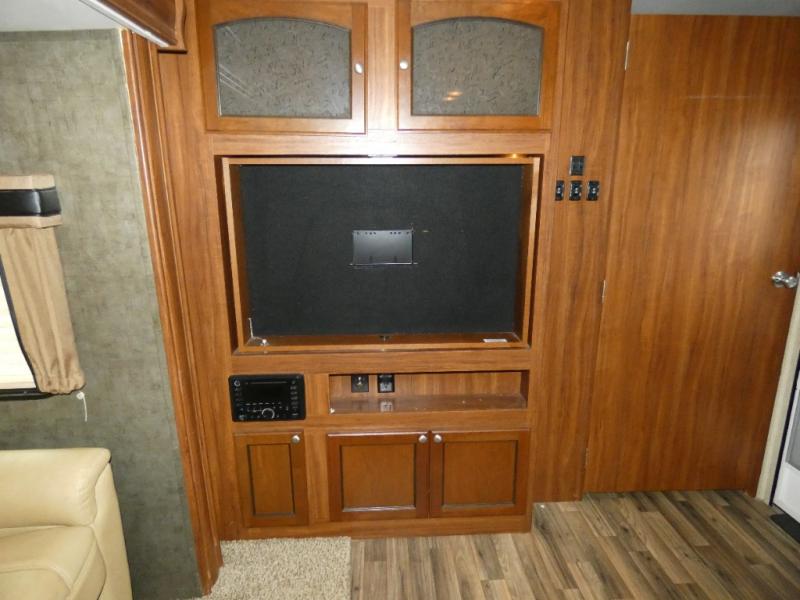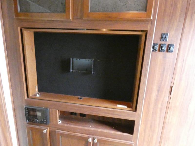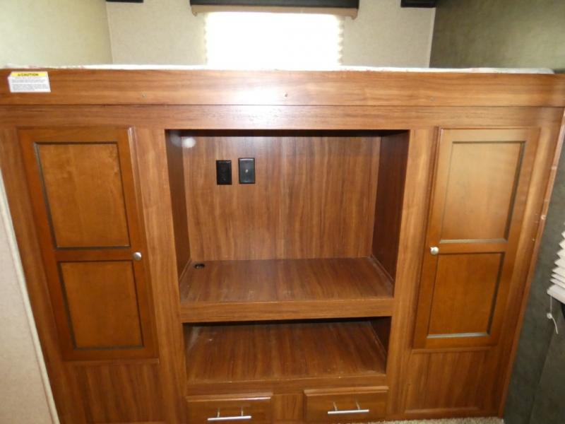 Just outside the bedroom door there is an entertainment center with swivel TV that can easily be viewed from the living space, or the bedroom when you retire for the night.