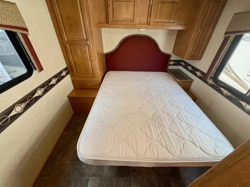 The rear queen bed features a nightstand with shirt closet above on one side and a wardrobe opposite. There is also an overhead cabinet for additional storage, plus so much more!