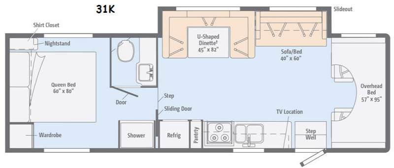 This Itasca Spirit can make all of your camping trips more enjoyable. Imagine having everything you need no matter where you stop. Model 31K offers a large slide out, a rear master bedroom, and plenty of space to enjoy.