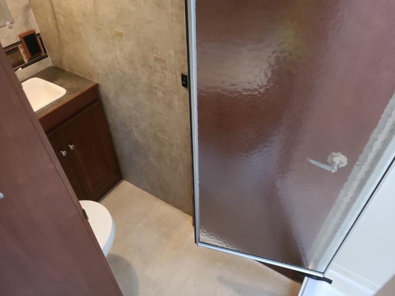 A folding door separates the bed and bath area and features a queen bed slide with wardrobe and shirt closet, plus a second wardrobe, and so much more!