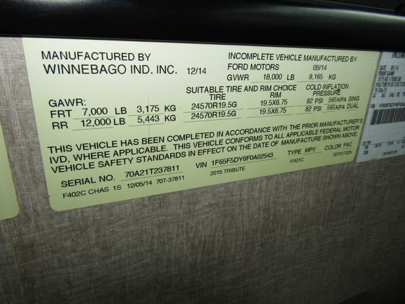 Used 2015 Itasca Tribute 31C Motor Home Class A