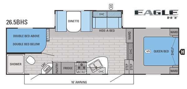 If you are looking for a fifth wheel with a bit more space for family and friends, then you have found it in the Eagle HT 26.5BHS by Jayco. This fifth wheel has a single slide and a rear bunk house.
