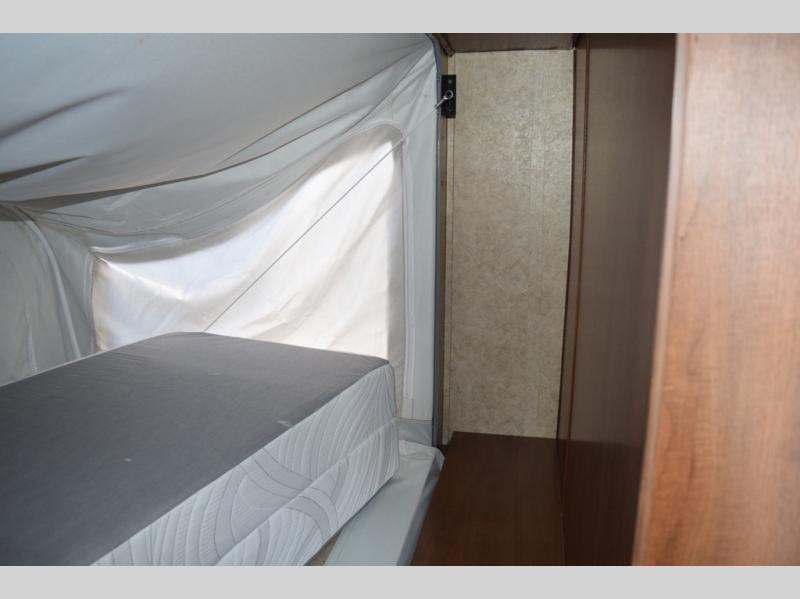 The Jay Feather Ultra Lite expandable X19H by Jayco offers a rear and front bed.