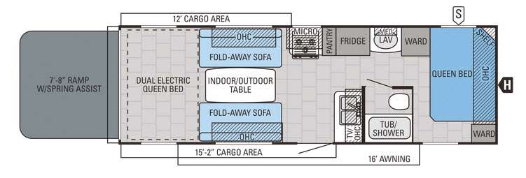 You can even choose an optional fold-away dinette, or an optional fold-away sofa and two lounge chairs, and so much more.