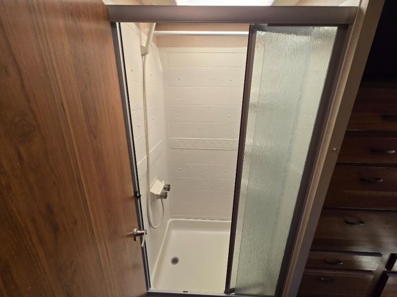 There are plenty of overhead cabinets throughout the 31UL, as well as exterior storage. You can even enjoy the outside entertainment center.