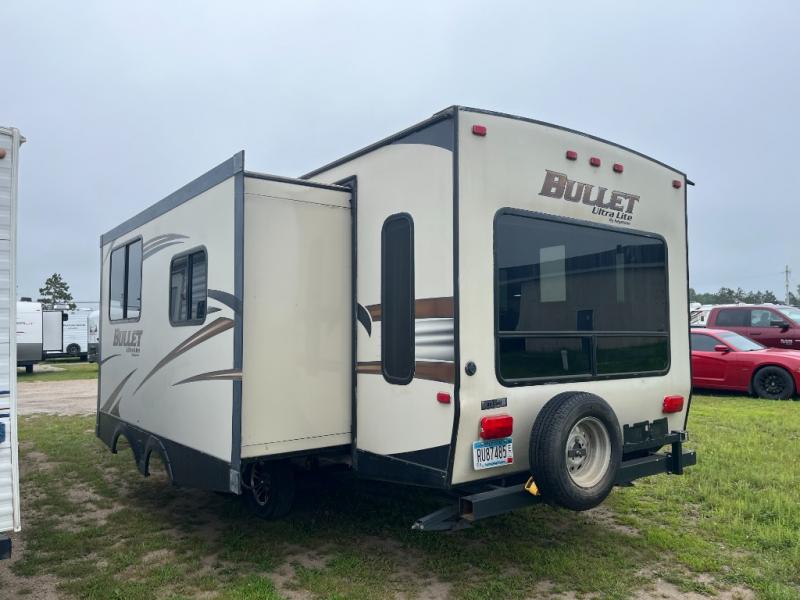 This rear living Bullet travel trailer features two separate entry doors for convenience, and a singled slide for added interior space, plus more!
