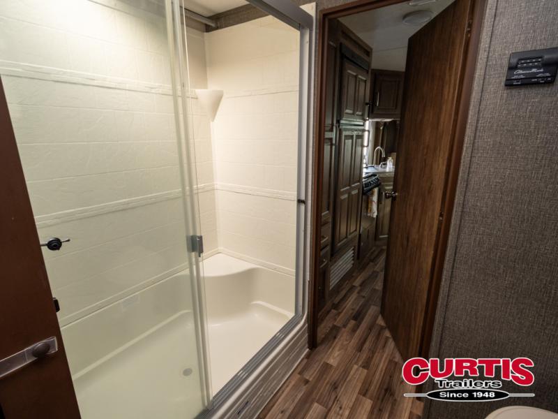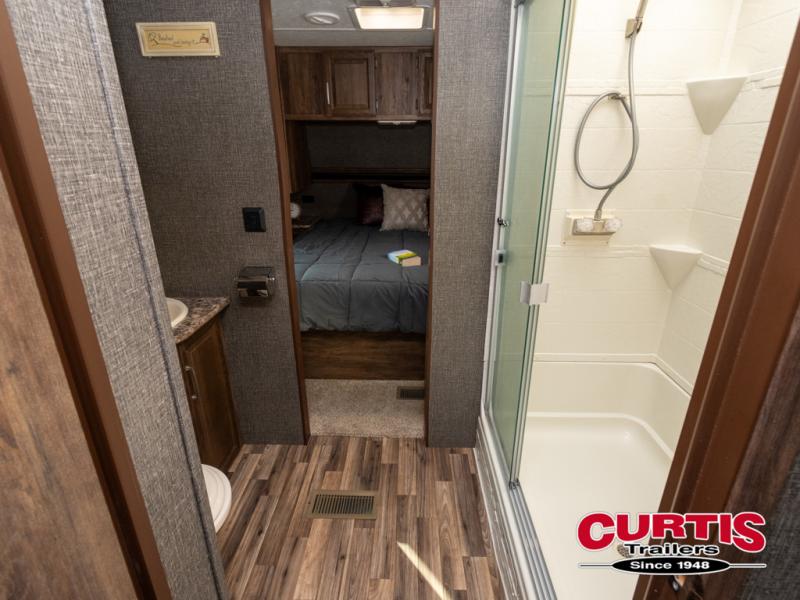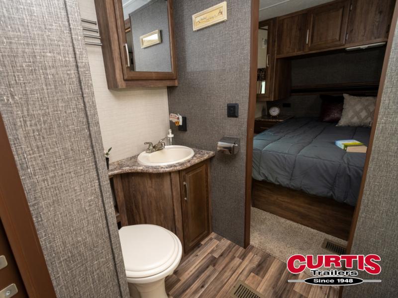 This rear living Cougar Half-ton Series travel trailer by Keystone RV has got you covered when it comes to camping. Model 28RLSWE offers sleeping for six, a large slide out for added interior space, plus dual entry doors for added convenience.