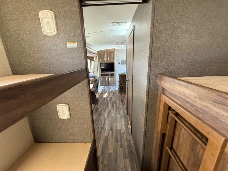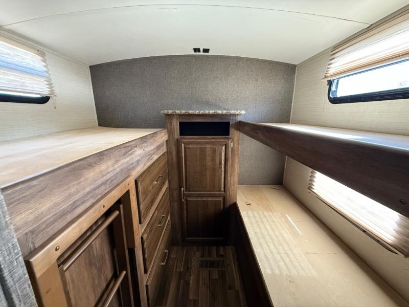 A great unit with a larger family in mind is this Keystone Cougar Half-Ton series travel trailer model 29RBKWE. With a bunkhouse in the rear, a large slide, and all the conveniences of home, you just need to pack up everyone, and enjoy!